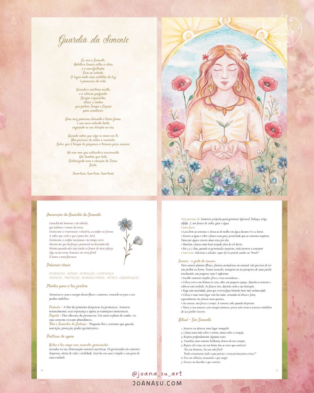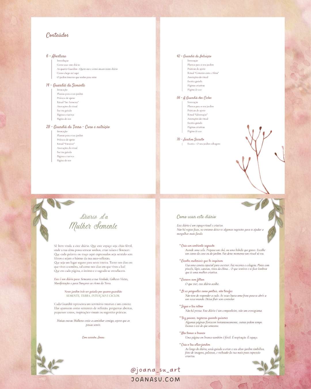 Ao longo das suas páginas, és guiada pelas Guardiãs do Jardim Interno, arquétipos que te ajudam a navegar diferentes fases da tua jornada – da semente ao florescimento, da introspeção à transformação.