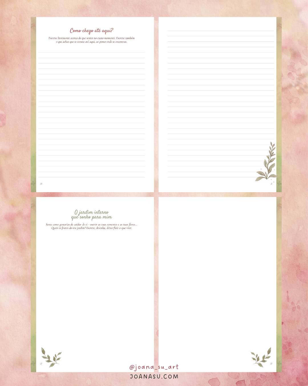 Este diário não precisa de ser usado de forma linear. Ele existe para te acompanhar ao teu ritmo, nos dias criativos, nos dias de recolhimento, nos começos e nos recomeços.